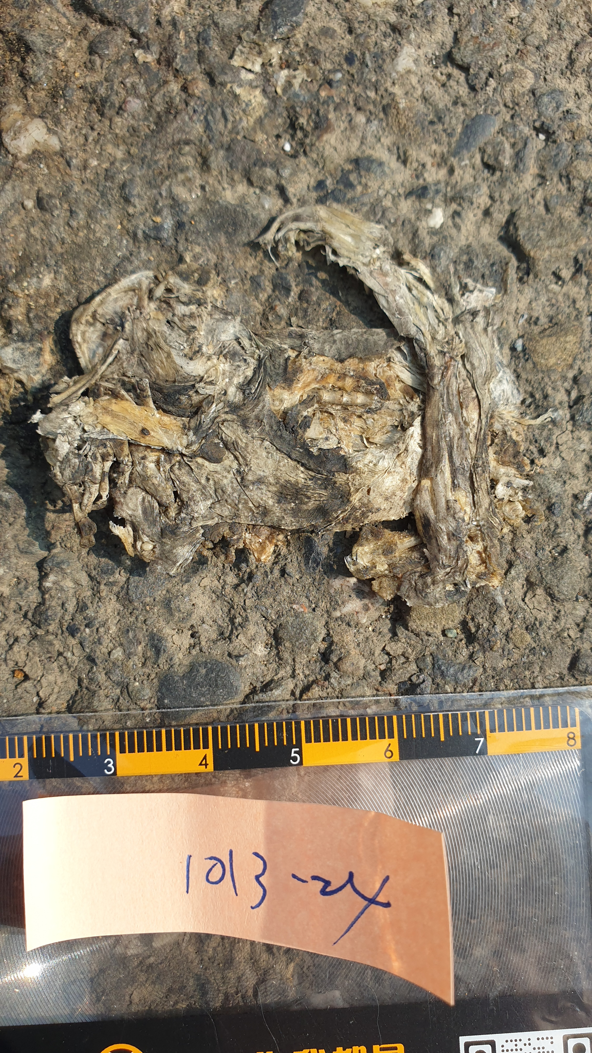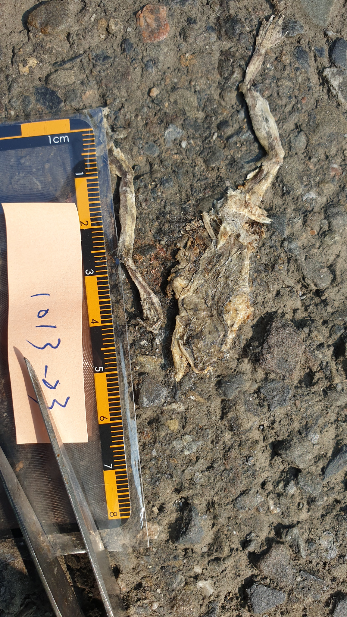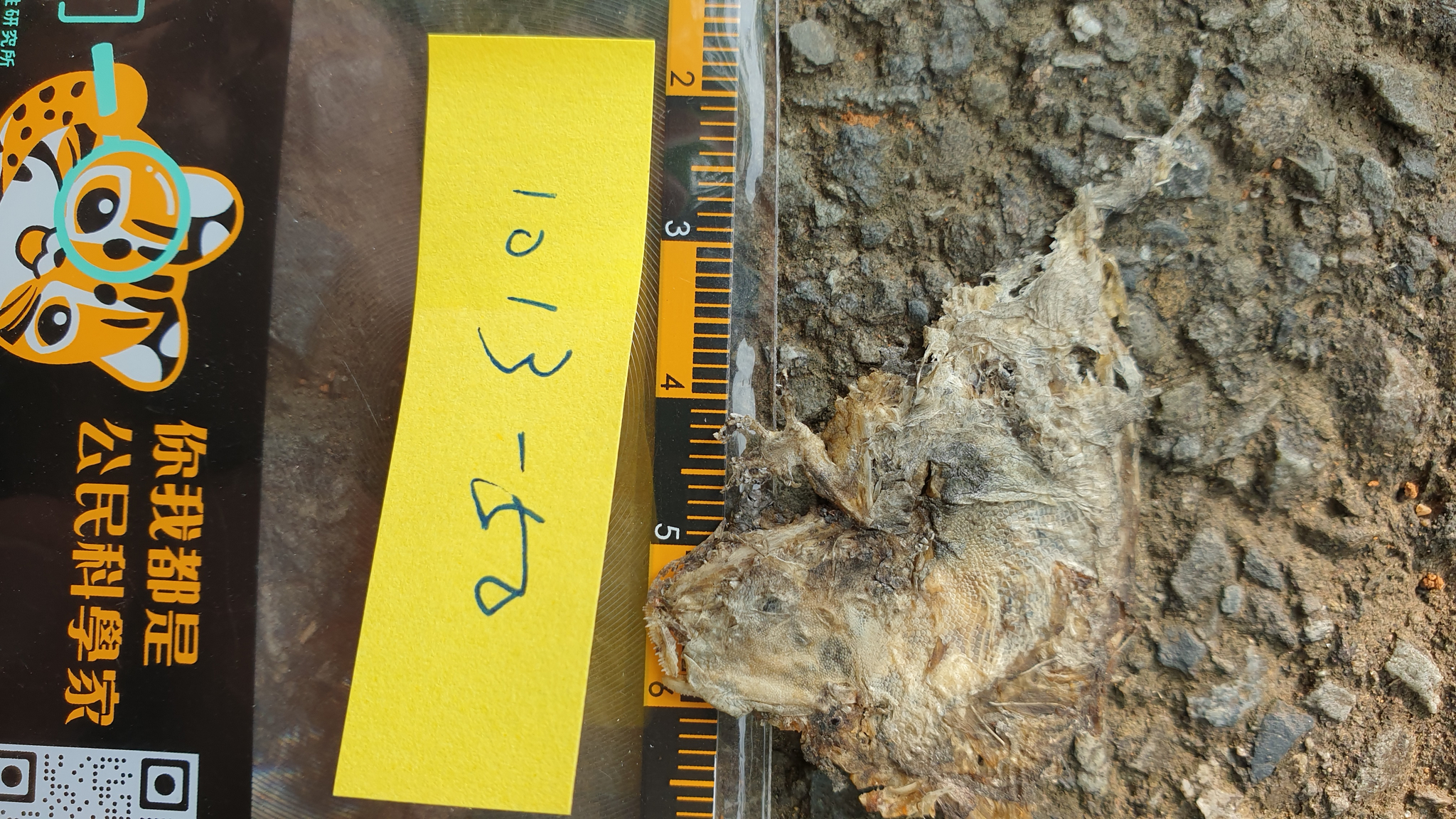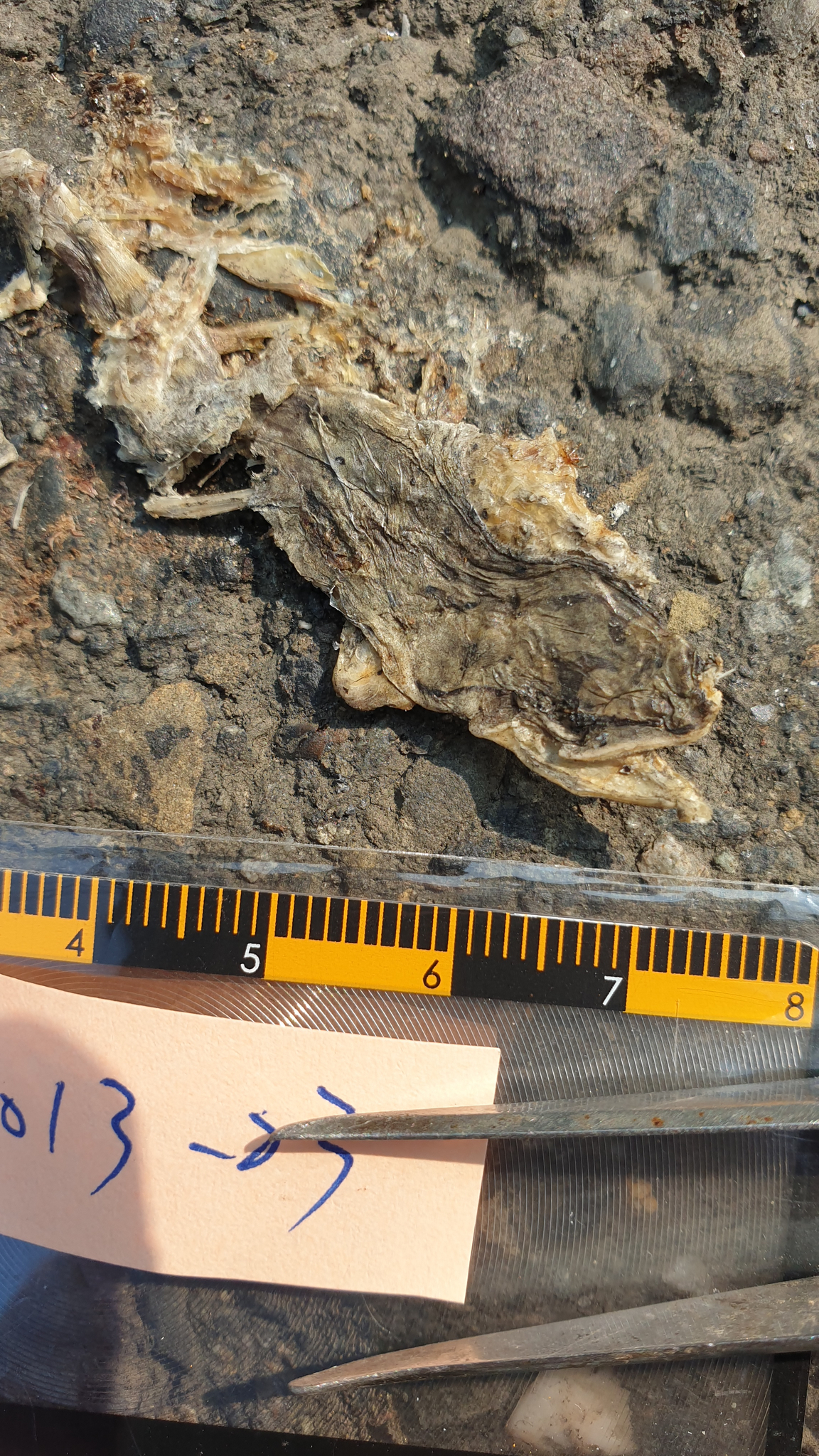 蛙皮泡水展開觀察到背中線