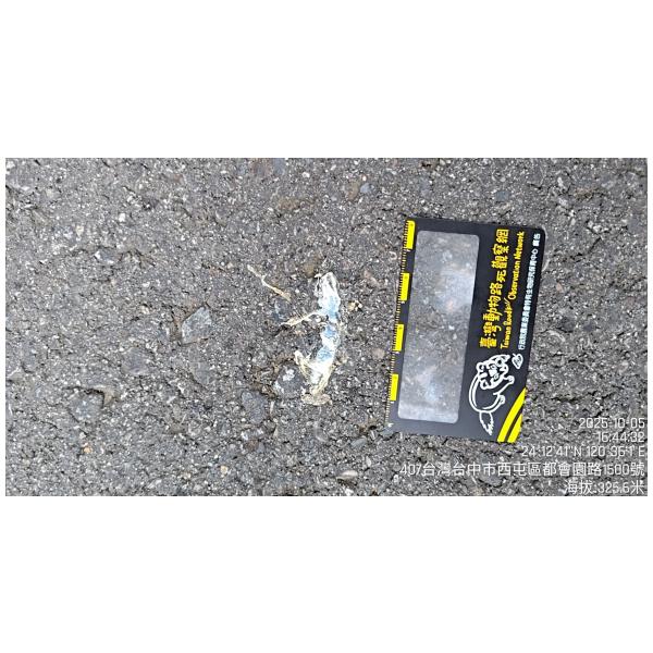物種--- (未鑑定)[原始紀錄物種] --鑑定未鑑定敏感層級座標不開放紀錄時間2025-10-05 16:44地點記錄者超生 (Double Lin)調查活動2025秋季(十月)系統化路死動物暨遊蕩犬貓數量調查: 調查活動 533829數量1 死因 路殺 類群 爬行 標本未採集標本 補充說明 鑑定題庫授權照片授權: CC BY (Double Lin)識別號9bd0457d-eb24-4f92-b6de-9b78f6eefa1f (OccurrenceUUID)533856 (nid)