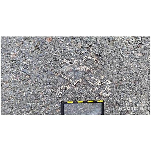 物種--- (未鑑定)[原始紀錄物種] --鑑定未鑑定敏感層級座標不開放紀錄時間2025-10-07 09:40地點記錄者超生 (Double Lin)調查活動2025秋季(十月)系統化路死動物暨遊蕩犬貓數量調查: 調查活動 534221數量1 死因 路殺 類群 兩生 標本未採集標本 補充說明 鑑定題庫授權照片授權: CC BY (Double Lin)識別號fc6204fc-3ed1-4389-b668-b60f75836cb4 (OccurrenceUUID)534232 (nid)