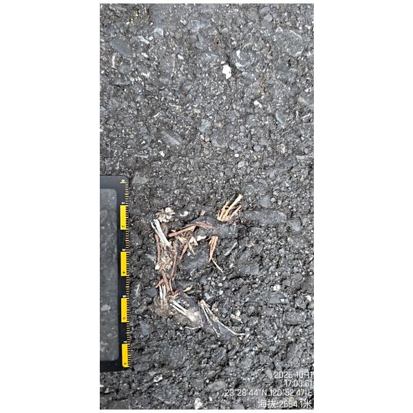 物種--- (未鑑定)[原始紀錄物種] --鑑定未鑑定敏感層級座標不開放紀錄時間2025-10-11 17:03地點記錄者Double Lin調查活動調查活動 543151數量1 死因 路殺 類群 兩生 標本未採集標本 補充說明 鑑定題庫授權照片授權: CC BY (Double Lin)識別號07e6b8dd-26c2-4068-92dd-ebe986d65d15 (OccurrenceUUID)543154 (nid)