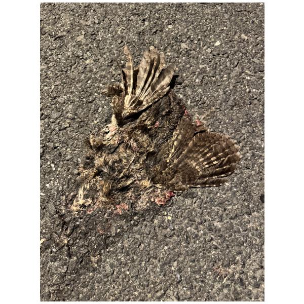 特徵說明: 全長約23-25公分,全身為灰褐色,具深褐色斑紋,腹部底色為灰褐色,並有黑色或皮黃色的雜紋。(猛禽腳爪)