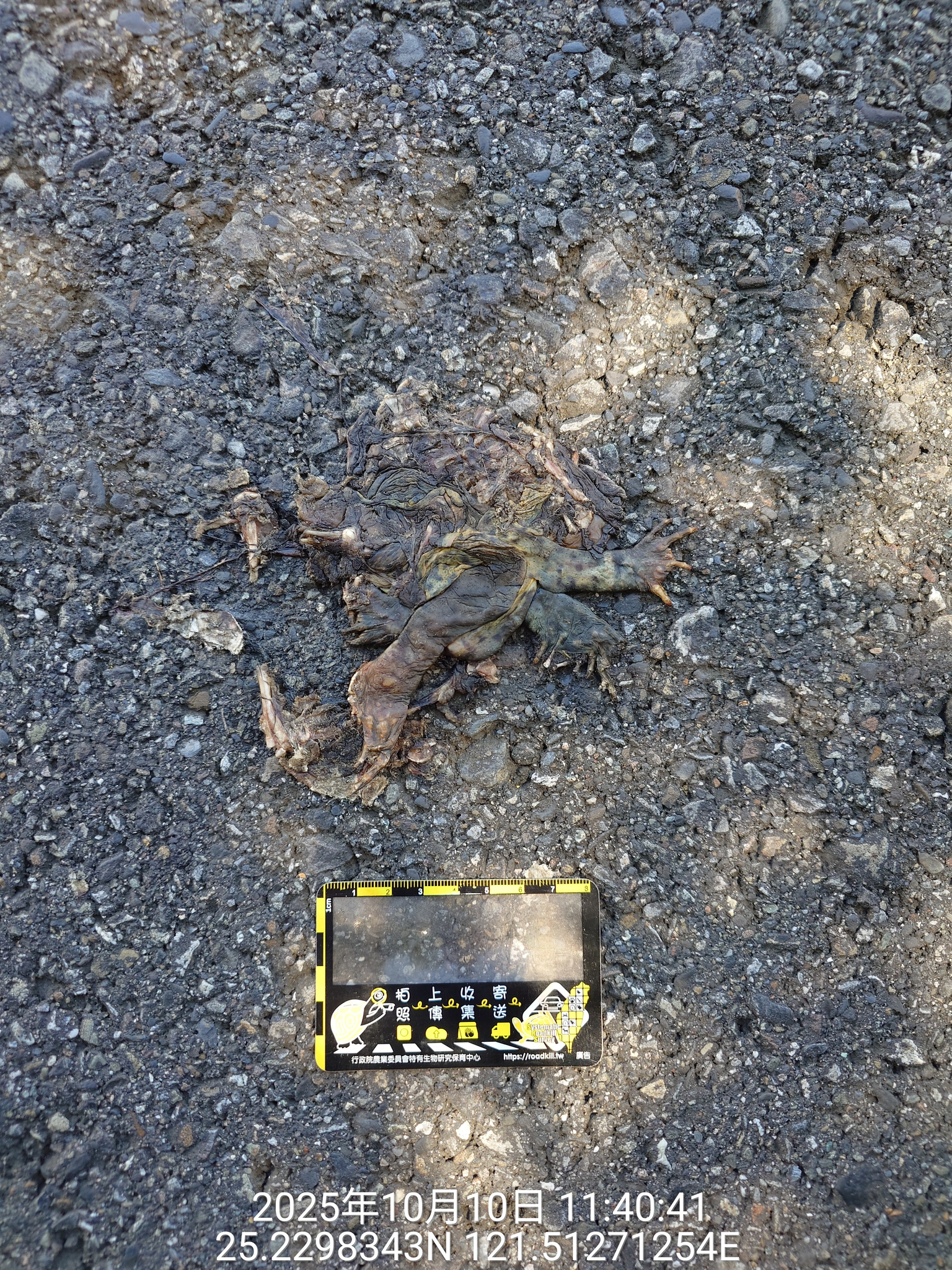 物種盤古蟾蜍 Bufo bankorensis (未鑑定)[原始紀錄物種] 盤古蟾蜍 Bufo bankorensis鑑定未鑑定敏感層級座標不開放紀錄時間2025-10-10 11:40地點記錄者邊緣人 (陳金棱)調查活動2025秋季(十月)系統化路死動物暨遊蕩犬貓數量調查: 調查活動 546422數量1 死因 路殺 類群 兩生 標本未採集標本 補充說明 鑑定題庫授權照片授權: CC BY (陳金棱)識別號50e419c9-1124-4bc4-8b0a-1dfcbeb69566 (OccurrenceUUID)546423 (nid)