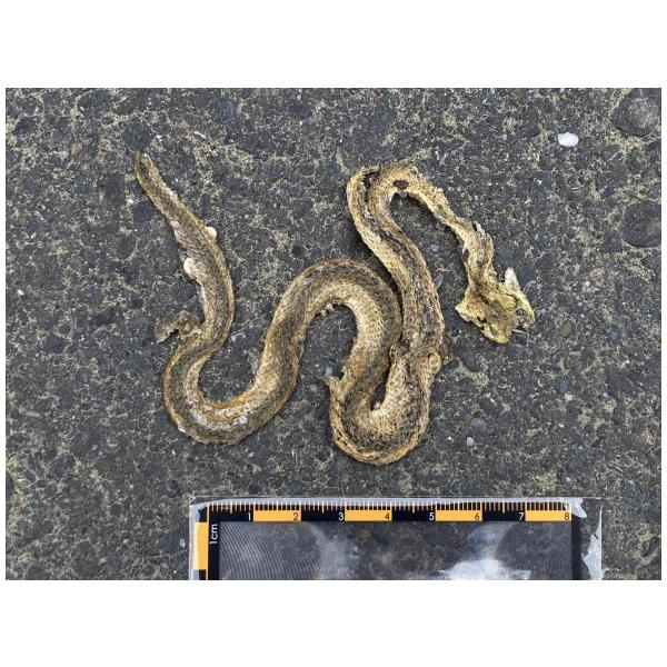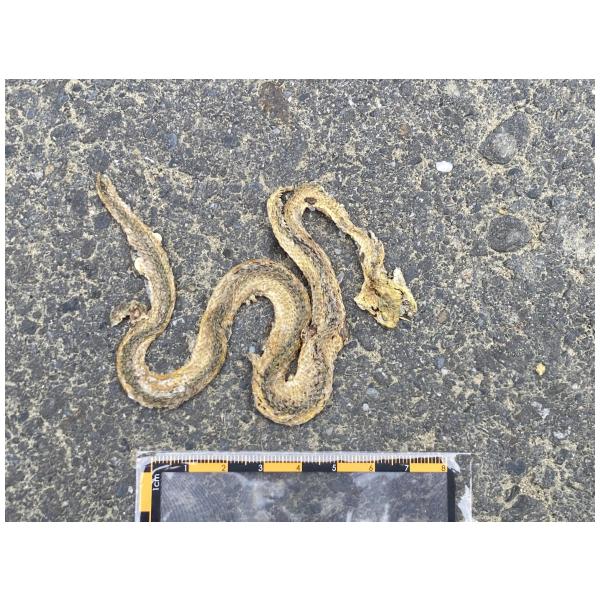 物種蛇亞目 Serpentes (未鑑定)[原始紀錄物種] 蛇亞目 Serpentes鑑定未鑑定敏感層級座標不開放紀錄時間2025-10-28 09:37地點記錄者生物多樣性指標研究室 (Fuan Tsai)調查活動2025秋季(十月)系統化路死動物暨遊蕩犬貓數量調查: 調查活動 547135數量1 死因 路殺 類群 爬行 標本未採集標本 補充說明 鑑定題庫授權照片授權: CC BY (Fuan Tsai)識別號7ad480db-de4b-4397-8bf6-834a9fd0a96a (OccurrenceUUID)547147 (nid)