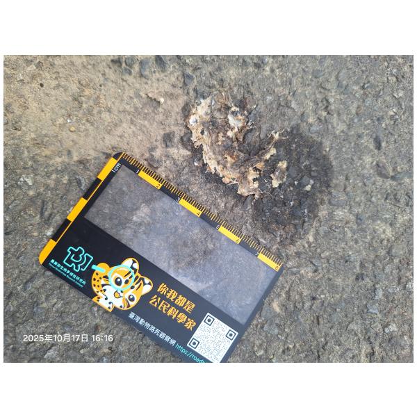 物種--- (未鑑定)[原始紀錄物種] 蛙鑑定未鑑定敏感層級座標不開放紀錄時間2025-10-17 16:16地點記錄者熊山寨工作隊 (熊出沒)調查活動2025秋季(十月)系統化路死動物暨遊蕩犬貓數量調查: 調查活動 547600數量1 死因 路殺 類群 兩生 標本未採集標本 補充說明 鑑定題庫授權照片授權: CC BY (熊出沒)識別號6aefe96d-eabf-468b-84b1-d63c5cf08314 (OccurrenceUUID)547617 (nid)