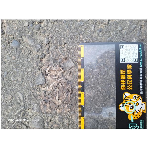 物種--- (未鑑定)[原始紀錄物種] 蛙鑑定未鑑定敏感層級座標不開放紀錄時間2025-10-17 16:18地點記錄者熊山寨工作隊 (熊出沒)調查活動2025秋季(十月)系統化路死動物暨遊蕩犬貓數量調查: 調查活動 547600數量1 死因 路殺 類群 兩生 標本未採集標本 補充說明 鑑定題庫授權照片授權: CC BY (熊出沒)識別號bb6f1b1d-cb17-4f62-987d-5c4226177ca0 (OccurrenceUUID)547625 (nid)