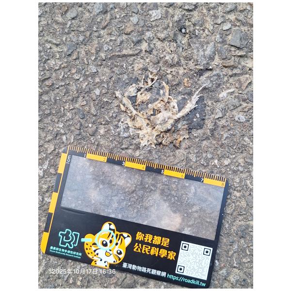 物種--- (未鑑定)[原始紀錄物種] 蛙鑑定未鑑定敏感層級座標不開放紀錄時間2025-10-17 16:36地點記錄者熊山寨工作隊 (熊出沒)調查活動2025秋季(十月)系統化路死動物暨遊蕩犬貓數量調查: 調查活動 547600數量1 死因 路殺 類群 兩生 標本未採集標本 補充說明 鑑定題庫授權照片授權: CC BY (熊出沒)識別號3afbe332-253b-41df-a705-a598a679888b (OccurrenceUUID)547707 (nid)