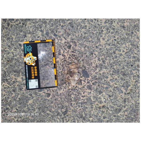 物種--- (未鑑定)[原始紀錄物種] 蛙鑑定未鑑定敏感層級座標不開放紀錄時間2025-10-17 16:43地點記錄者熊山寨工作隊 (熊出沒)調查活動2025秋季(十月)系統化路死動物暨遊蕩犬貓數量調查: 調查活動 547600數量1 死因 路殺 類群 兩生 標本未採集標本 補充說明 鑑定題庫授權照片授權: CC BY (熊出沒)識別號62fd6f0d-f60c-4be3-875e-693efb03aa67 (OccurrenceUUID)547745 (nid)