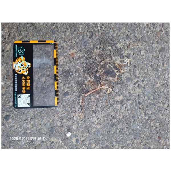 物種--- (未鑑定)[原始紀錄物種] 蛙鑑定未鑑定敏感層級座標不開放紀錄時間2025-10-17 16:54地點記錄者熊山寨工作隊 (熊出沒)調查活動2025秋季(十月)系統化路死動物暨遊蕩犬貓數量調查: 調查活動 547600數量1 死因 路殺 類群 兩生 標本未採集標本 補充說明 鑑定題庫授權照片授權: CC BY (熊出沒)識別號2bf5ac5c-e677-417d-8b2b-36238fe489e8 (OccurrenceUUID)547800 (nid)