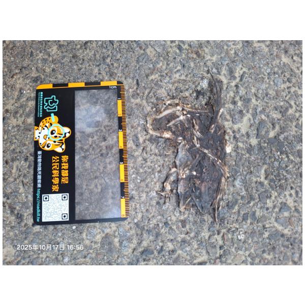 物種--- (未鑑定)[原始紀錄物種] 蛙鑑定未鑑定敏感層級座標不開放紀錄時間2025-10-17 16:56地點記錄者熊山寨工作隊 (熊出沒)調查活動2025秋季(十月)系統化路死動物暨遊蕩犬貓數量調查: 調查活動 547600數量1 死因 路殺 類群 兩生 標本未採集標本 補充說明 鑑定題庫授權照片授權: CC BY (熊出沒)識別號d5270a1d-6736-489e-8e67-c347e9821fd2 (OccurrenceUUID)547809 (nid)