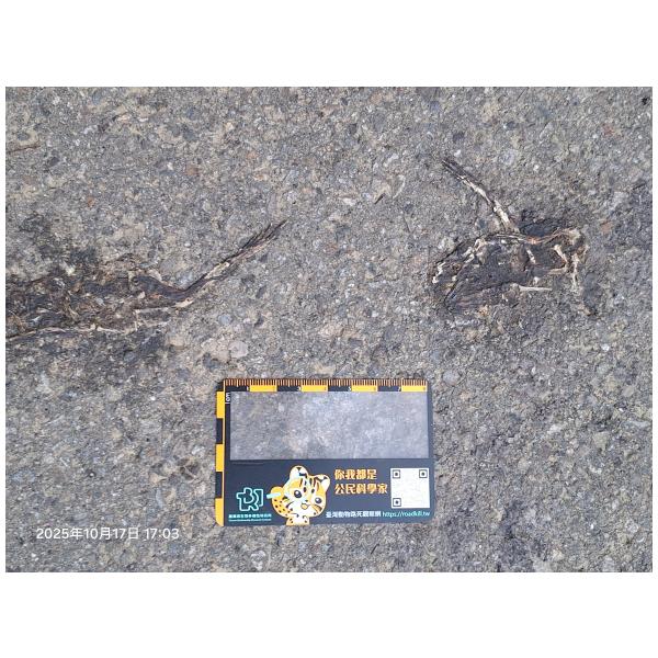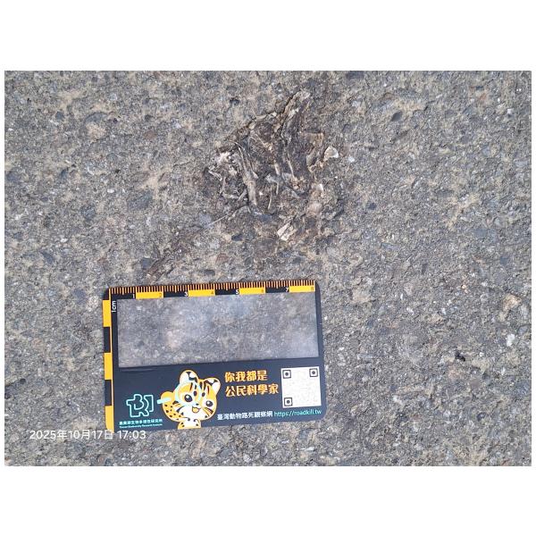 物種--- (未鑑定)[原始紀錄物種] 蛙鑑定未鑑定敏感層級座標不開放紀錄時間2025-10-17 17:03地點記錄者熊山寨工作隊 (熊出沒)調查活動2025秋季(十月)系統化路死動物暨遊蕩犬貓數量調查: 調查活動 547600數量4 死因 路殺 類群 兩生 標本未採集標本 補充說明 鑑定題庫授權照片授權: CC BY (熊出沒)識別號153558e3-12f2-4a24-a52e-784e31d9e275 (OccurrenceUUID)547841 (nid)