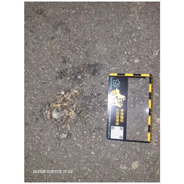 物種--- (未鑑定)[原始紀錄物種] 蛙鑑定未鑑定敏感層級座標不開放紀錄時間2025-10-17 17:52地點記錄者熊山寨工作隊 (熊出沒)調查活動2025秋季(十月)系統化路死動物暨遊蕩犬貓數量調查: 調查活動 547600數量2 死因 路殺 類群 兩生 標本未採集標本 補充說明 鑑定題庫授權照片授權: CC BY (熊出沒)識別號de8c0eb5-f7d6-4f94-86ab-b5b5320be2b6 (OccurrenceUUID)547989 (nid)